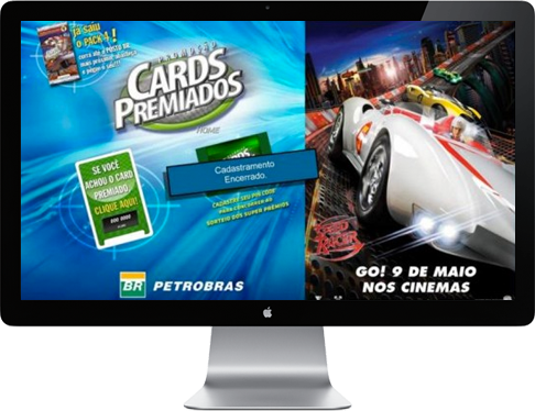 A promoção de Cards Premiados Petrobras fez sucesso, assim como o seu site. Com um visual moderno, a Petrobras pegou carona com o filme “Speed Racer”, e disponibiliza diversos atrativos para os amantes da velocidade, como jogos e downloads exclusivos.