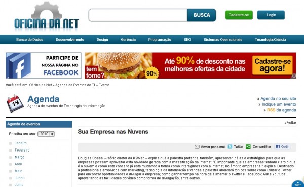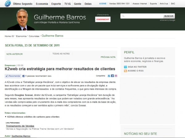 O artigo de Tiago Nogueira, publicado no blog Web Dialogos, destaca o poder do tratamento de informações e da tecnologia de captura de dados. Veja o artigo abaixo e informe-se com nossa equipe de consultores como sua empresa pode se preparar para esse futuro e entender melhor essas tecnologias com nossa ferramenta FeedBack.E lembre-se de apagar os cookies de seu navegador. Veja nesse link como fazer isso: *link(http://2by.com.br/930;http://2by.com.br/930)--------------------------------Se você usa o Adsense, Adwords e Analytics como proprietário do site, o Google tem uma série de informações que ele pode usar a favor ou contra você.Na verdade, você nem precisa realmente de ter adsense, mas visitar um site com anúncios do adsense nele …. O Google registra sua visita com os cookies …Se você tiver uma conta do Gmail, o Google sabe com quem você está conectado (com base no endereço de e-mail), bem como seus gostos e desgostos (que já tem anúncios personalizados de acordo com o que você está falando nos emails).Se você usa o Google Reader, eles sabem quais sites você mais gosta, os que você lê e a taxa de cliques…Se você tiver uma conta do gmail e ficar conectado, eles vão procurar adequar o seu comportamento de acordo com a pesquisa passada. Se você é “ligado” através da mídia social, eles vão dizer-lhe, além disso, que compartilhou o que na sua rede.Se você tiver Facebook ou Twitter, eles sabem que os círculos sociais em que você está, quem gosta de quê, quem é o mais “ligado”, etc.Se você não tiver uma conta do Gmail, o Google ainda sabe a taxa de retorno de volta para a pesquisa e ainda vai adequar os seus resultados de busca (em geral) de acordo com o seu endereço IP… Se puder.Isto não é uma conspiração, é fato… o Google sabe bastante sobre os seus gostos para poder retornar os termos de busca mais relevantes possível. A próxima era das buscas (buscas sociais) será definida em tentar compreender quem é o usuário para poder retornar resultados mais compatíveis.Ano passado uma declaração do presidente do Google, Eric Schmidt, rodou o mundo. Não pela importância da declaração total, mas por algumas frases utilizadas por ele. Frases como “Nós podemos sugerir o que você deve fazer a seguir, o que interessa a você. Imagine: nós sabemos onde você está, nós sabemos do que você gosta.” Ou ainda: “Não apenas você não vai ficar mais sozinho, você nunca vai ficar sem ter o que fazer! Nós vamos sugerir o que você deveria estar assistindo, porque nós sabemos o que interessa a você.”Não estou levantando aqui se o fato do Google saber de tudo é uma coisa boa ou ruim. Estou apenas constatando o quanto essa empresa sabe sobre cada pessoa que usa seus sites. Até onde você quer que essas informações circulem pela rede?Link do artigo:http://www.webdialogos.com/2011/cibercultura/o-google-sabe-quem-e-voce/