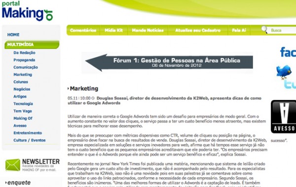 A K2web coloca seu site em destaque com técnicas avançadas de SEO que funcionam também em sites em Flash. Veja agora mesmo a posição de seu site clique aqui.Quanto mais próximo da 1ª posição seu site estiver, melhor será seu volume de visitação e maior o seu volume de vendas. Junte a essa técnica um serviço de identificação de e-mails e um serviço de e-mail marketing e melhore ainda mais seus resultados.A K2web oferece todos esses serviço de forma integrada.Consulte nossos consultores e veja como podemos ajudar sua empresa a se destacar e vender mais.Veja abaixo alguns de nossos clientes que estão em destaque, na 1ª página do Google. Pesquisa realizada em 15/05/2012:oncofarma.com.br(Oncologia+Medicamentos@mais&mais@Distribuição)> posição: 1 (página: 1)newsqd.com.br(mercado+quimico)> posição: 6 (página: 1)manzonicunha.com.br(Construção@mais&mais@Incorporação+de+Condomínios)> posição: 3 (página: 1)ftpeai.com.br(Soluções+Revenda@mais&mais@Implementações+de+Softwares)> posição: 1 (página: 1)equilibrionet.com.br(academia+campo+belo)> posição: 3 (página: 1)imagemfastbeauty.com.br(salao+de+beleza+no+brooklin)> posição: 11 (página: 2)lunametais.com.br(metais+não+ferrosos+para+industria)> posição: 11 (página: 2)chaleslince.com.br(chales+maranduba)> posição: 10 (página: 1)piupiuonline.com.br(fabricante+de+roupas+para+bebês)> posição: 2 (página: 1)pousadabicoverde.com.br(Pousada+em+Juquei)> posição: 1 (página: 1)sinterpba.org.br(Sindicato+dos+Trabalhadores+de+Rádio!)> posição: 3 (página: 1)tvilhabela.com.br(TV+Ilha+Bela)> posição: 1 (página: 1)casadaboianews.com.br(Material+Hidráulico+Peças +de+Cobre)> posição: 1 (página: 1)cibraquim.net.br(Distribuição@mais&mais@experiência+no+mercado+químico)> posição: 1 (página: 1)person.com.br(Helices+para+Embarcações)> posição: 7 (página: 1)acrobaciaearte.com.br(escola+de+circo+vila+olimpia)> posição: 4 (página: 1)olimpiafutebol.com.br(escola+de+futebol+jabaquara)> posição: 4 (página: 1)fobrasanews.com.br ou fobrasa.com.br(prensa+viradeira)> posição: 10 (página: 1)ittem.com.br(fabrica+de+calçados+femininos)> posição: 8 (página: 1)suelycaliman.com.br(moda+festa)> posição: 3 (página: 1)venicomex-news.com.br(Assessoria@mais&mais@Outsourcing)> posição: 1 (página: 1)editorarideel.com.br(editora+livros+jurídicos)> posição: 13 (página: 2)vanguarda.ind.br(Refratarios+Especiais)> posição: 2 (página: 1)ateliecarlaprates.com.br(artesanato+porcelana+ceramica)> posição: 3 (página: 1)galpaodaimagem.com.br(Confecção+de+Fachadas)> posição: 4 (página: 1)cristinaguardia.com.br(Atelier+Moda+Feminina)> posição: 1 (página: 1)primamontessori.com.br(ensino+infantil+montessori)> posição: 1 (página: 1)oncofarma.com.br(Medicamentos+oncológicos@mais&mais@Distribuicao)> posição: 1 (página: 1)ciapaulistadeleiloes.com.br(Leilão+de+Antiguidades)> posição: 2 (página: 1)ciapaulistadeleiloes.com.br(Leilão+de+Antiguidades+Obras+de+Arte)> posição: 2 (página: 1)acrobaciaearte.com.br(escola+de+circo+são+paulo)> posição: 6 (página: 1)fobra sanews.com.br ou fobrasa.com.br(guilhotina+hidraulica)> posição: 10 (página: 1)cliplaundering.net.br(Pesquisa+-+Lavagem+de+dinheiro)> posição: 3 (página: 1)babynurse.com.br(berçario+vila+mascote.)> posição: 7 (página: 1)calceperfeito.net.br(calçados+para+necessidades+especiais)> posição: 2 (página: 1)caymanconsultorianews.com.br(consultoria@mais&mais@marketing+para+restaurantes)> posição: 8 (página: 1)helipaint.com.br(reforma+de+helipontos)> posição: 1 (página: 1)clinicamazzoni.com.br(dentista+campo+belo)> posição: 15 (página: 2)colchoesperon.com.br(colchões+especiais+esportivos)> posição: 1 (página: 1 )ecoprocessa.com.br(coprocessamento+resíduos+industriais)> posição: 19 (página: 2)equipartelas.net.br(cortinas+persianas+Telas+Mosquiteiras)> posição: 6 (página: 1)fiscaisdanatureza.net.br(entrevistas+temas@mais&mais@projetos+ambientais)> posição: 1 (página: 1)fisioequilibrio.com.br(pilates+acupuntura+hidroterapia)> posição: 7 (página: 1)sinosangeli.com.br(Sinos+em+Bronze)> posição: 2 (página: 1)harmonianaterra.org.br(ecopedagogia+ecologia)> posição: 2 (página: 1)madecomputers.com.br(Computadores+Acessórios@mais&mais@Suporte)> posição: 4 (página: 1)marinaatlantica.com.br(Garagem+Nautica+são+paulo)> posição: 6 (página: 1)marinaatlantica.com.br(marina+guarapiranga)> posição: 1 (página: 1)mazzproducoes.com.br(Produçãolocação+de+equipamento+áudio-visual@mais&mais@tecnologia+para+eventos)> posição: 1 (página: 1)metroshoppings.net.br(Desenvolvimento+planejamento@mais&mais@comercialização+de+shopping+centers)> posição: 1 (página: 1)opentradequimica.com.br(distribuição+produtos+BORREGAARD+brasil)> posição: 1 (página: 1)othelobarrestaurante.com.br(Restaurante+contemporâneo+Campo+Belo)> posição: 2 (página: 1)palavrabemescrita.com.br(Revisão+tradução@mais&mais@criação+de+textos)> posição: 1 (página: 1)moryba.com.br(Pousada+Juquehy+São+Sebastião)> posição: 10 (página: 1)primeclean.com.br(mão+de+obra+especializada+academias)> posição: 2 (página: 1)ra dioway.com.br(venda@mais&mais@locação+de+radiocomunicação)> posição: 4 (página: 1)www.vidanovaparaidosos.com.br/(casa+de+repouso+campo+belo)> posição: 8 (página: 1)rotoplas.net.br(Produtos+Plásticos+pet+shop)> posição: 4 (página: 1)rotoplas.net.br(Produtos+Plásticos+polistore)> posição: 1 (página: 1)mamaedesconto.com.br(clube+descontos+infantil)> posição: 6 (página: 1)sbav-sp.com.br(cursos+de+vinho)> posição: 12 (página: 2)seuchocolate.com.br(brindes+de+chocolate)> posição: 5 (página: 1)target-sm.com.br(venda+de+NoBreak+para+Ultrassom)> posição: 1 (página: 1)teksil.com.br(Silicones@mais&mais@materiais+químicos)> posição: 1 (página: 1)tempusnet.net.br(stressbreak+administração+do+tempo+consultoria)> posição: 1 (página: 1)vanguarda.ind.br(refratarios+especiais